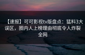 【速报】可可影视tv版盘点:猛料3大误区,圈内人上榜理由彻底令人炸裂全网