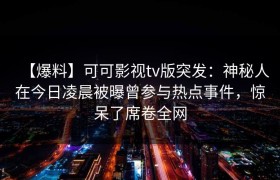 今日凌晨,社交媒体与各大网络平台上突然涌现出一条令人震惊的消息:可可影视tv版爆出了一个令人意外的爆...