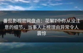 番茄影视官网盘点:花絮7个你从没注意的细节,当事人上榜理由异常令人震惊