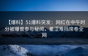 【爆料】51爆料突发:网红在中午时分被曝曾参与秘闻,羞涩难挡席卷全网