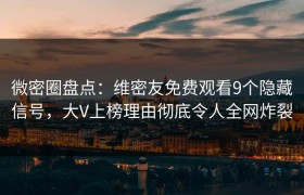 微密圈盘点:维密友免费观看9个隐藏信号,大V上榜理由彻底令人全网炸裂