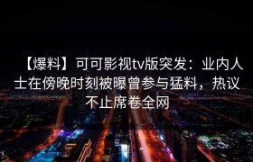 在最近的娱乐圈动荡中,一则关于可可影视TV版的爆料引起了极大的关注,成千上万的网友纷纷加入到热议之中...